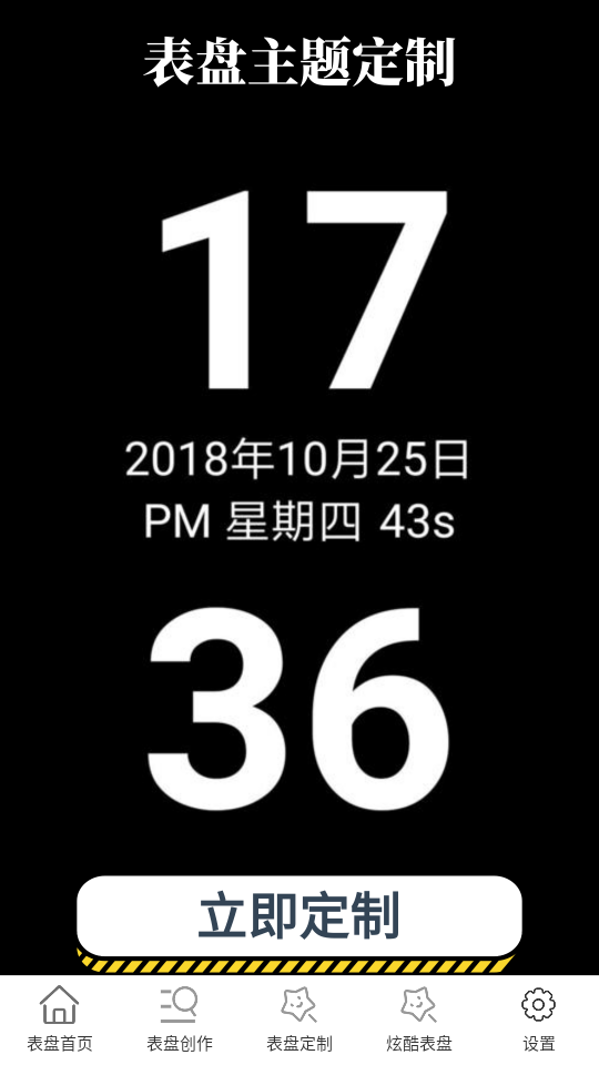1、进入软件之后,点击下方的表盘定制”,找到立即定制”。