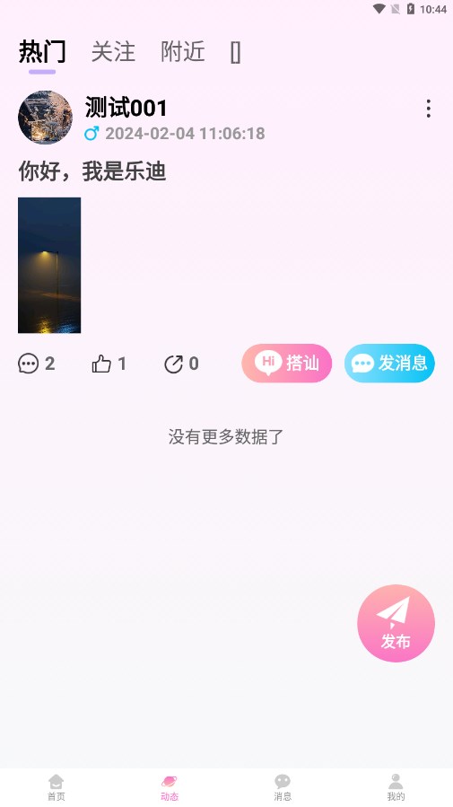 是一个安全社交的软件。用户可以随时发布动态,分享精彩生活,并且拥有多样化的互动功能,让用户可以快速上手使用。通过随缘交友的速配功能,用户可以快速匹配到合适的对象,发现更多同城小伙伴,一键搭讪,实现在线互动,随时随地在线聊天,认识更多有趣的人。