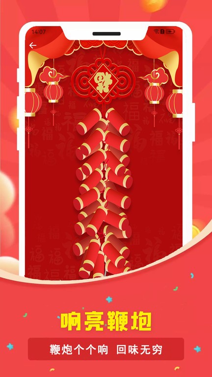 电子鞭炮:一键触发逼真爆竹音效,搭配动态爆炸画面,瞬间点燃节日气氛,带来身临其境的听觉冲击。