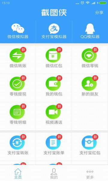 截图侠app是一款专业的截图制作器!支持新版UI界面!比如余额提现、聊天记录、红包转账、语音视频、群发等N个功能,你能想到TA都可以!