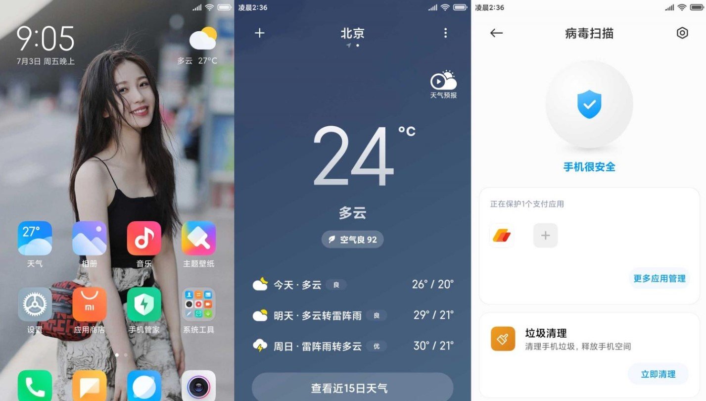 保留MIUI官方应用商店、浏览器、日历、视频音乐等实用功能