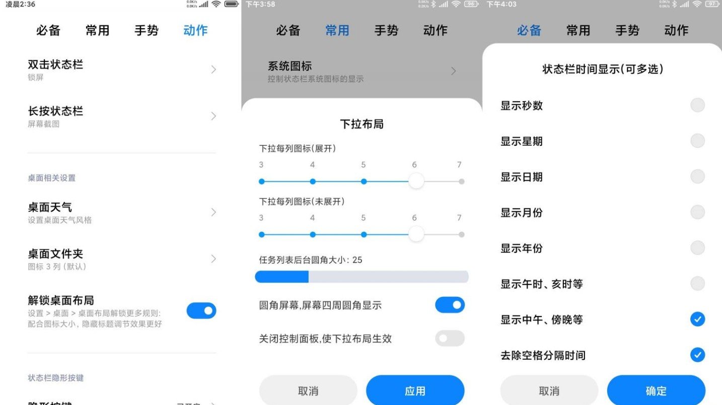 支持屏幕导航按键高度调节,支持状态栏系统图标隐藏功能(支持MIUIV10+版本)