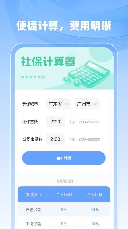 1、便捷计算:简单便捷的计算器工具,轻轻松松就能实现社保计算,知道自己的缴纳比例;