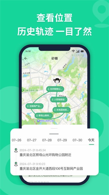 2、可回溯行程:历史轨迹功能支持按日期查看,让每一段行动路径都有迹可循。