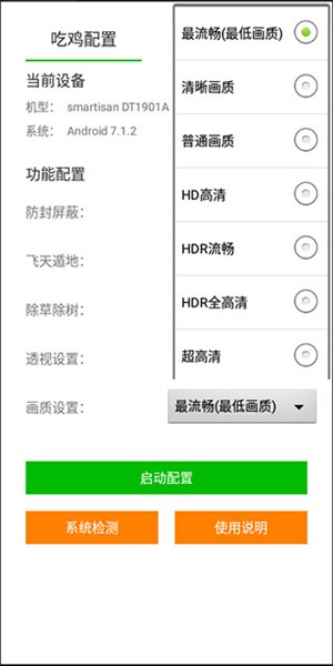1. 打开苏醒画质助手120帧,进入主界面后选择吃鸡配置”,即可开始针对《和平精英》等战术竞技类游戏进行画质调优。