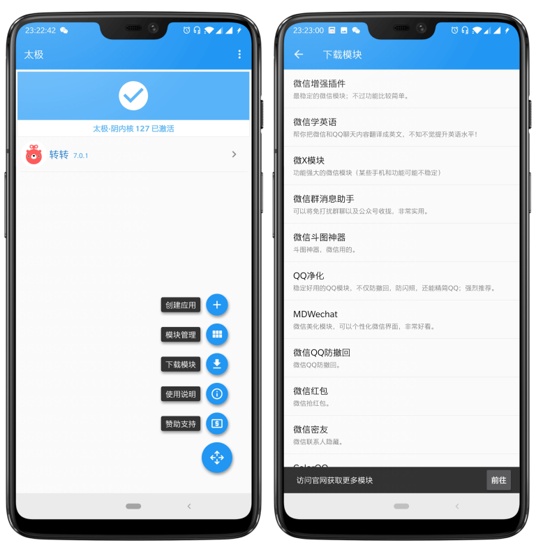 太极是一个无需Root、不用解锁Bootloader,也不需要刷机就能使用 Xposed 模块的一个APP,兼容微X模块,云村清理工等等超多模块,强烈推荐