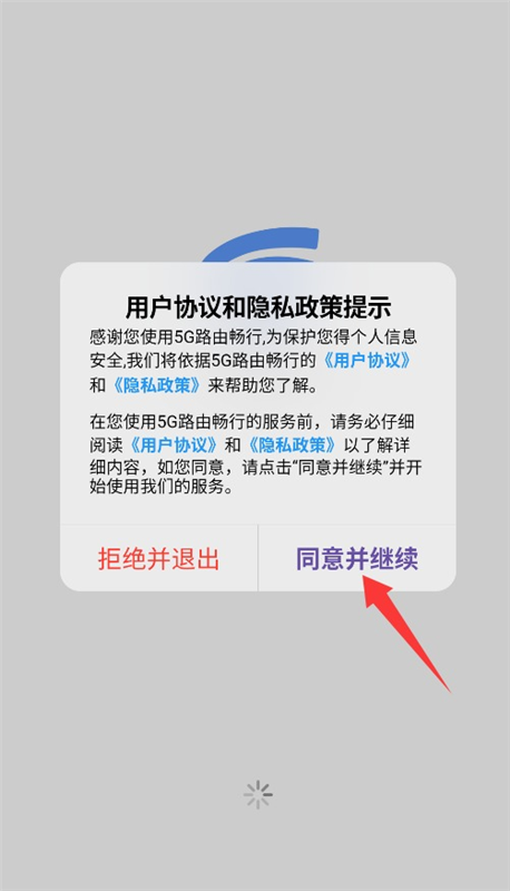 首次启动应用时,需阅读并同意探测协议条款,点击同意并继续”后方可进入登录界面。