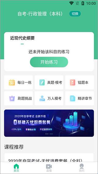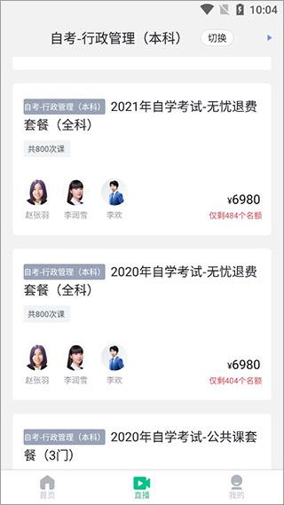5、切换到直播,查看你自己需要自考本科相关信息。
