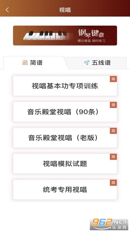学习板块分类:分为乐理、视唱、练耳、常识等板块内容,用户可以选择学习;