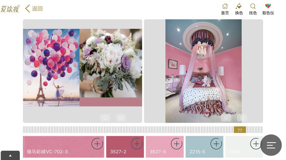 爱涂妆是由新加坡乐意集团基于先进的色彩系统开发生成的。爱涂妆还能够为您提供更多的服务。它是一个操作简单的免费应用程序,可以虚拟各种墙面艺术涂料上墙后的质感作用,是您色彩调配的好帮手。