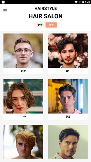 男性用户可直接浏览专属发型库,涵盖商务、潮流、运动等多种风格,满足不同场合需求。