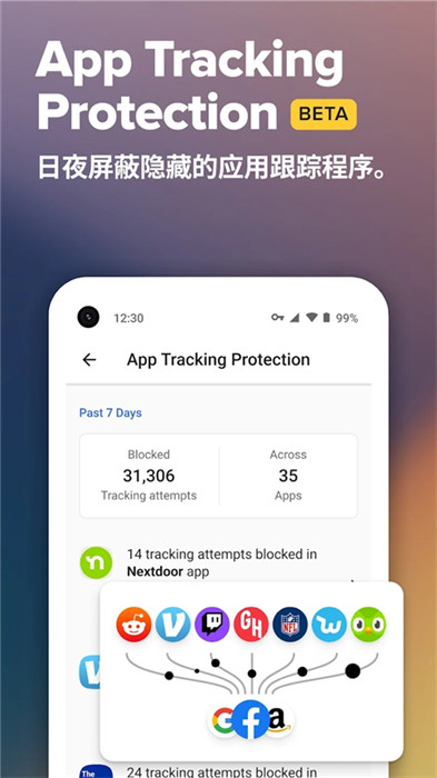 摆脱广告和网络跟踪:DuckDuckGo 实时检测并阻断所有已知隐形追踪器,清晰展示哪些广告网络试图跟踪你,真正做到透明可控。