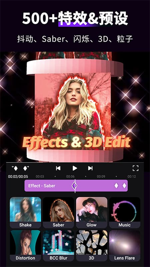 动态特效库:内置大量炫酷转场、粒子效果、动态贴纸与文字动画,一键应用,瞬间提升视频质感与趣味性。