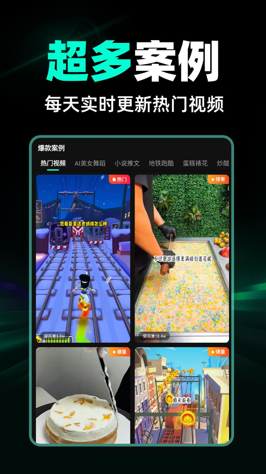 AI混剪视频app为广大媒体人提供便利,内置工具齐全,打破传统一帧一帧剪辑手法,通过AI系统智能分析处理,输入想要的类型或者是套用模板即可一键快速获取高品质混剪视频,还支持去重、去字幕、智能分镜,全方位满足您的多重需求!轻松打造爆款视频!想你所想!