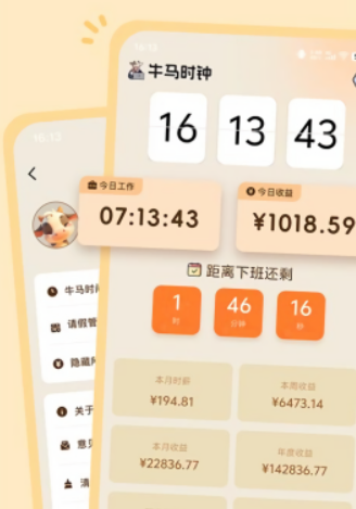 注册登录后,用户即可解锁完整功能:从时薪动态追踪、请假管理,到个性化翻页时钟设置,一切操作简单直观。它不仅帮助你清晰掌握每一分劳动的价值,更通过人性化设计让时间管理变得有趣、有感、有态度。对于追求效率与情绪平衡的现代用户来说,这是一款不可多得的实用+治愈型工具。