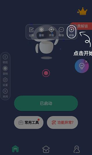 1、首先下载安装好天天自动点击器APP,打开进入软件点击启动功能;