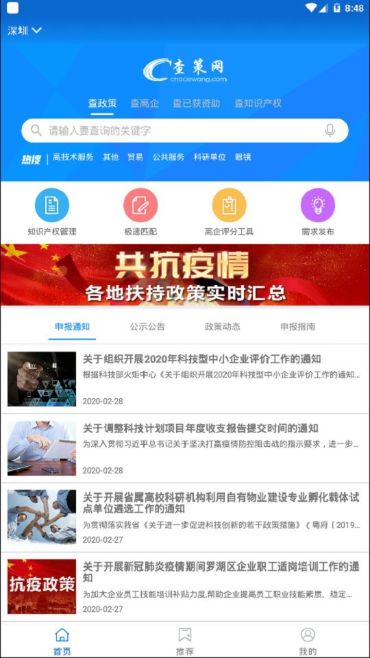 查策网安卓版是国内领先的科技产业政策大数据互联网平台,为国内企业提供全面的政策资讯查询、基于精准算法的智能化匹配工具、高企数据库查询、高企认定自助系统等专业化工具。