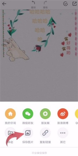 完成编辑后,点击右上角【分享】图标,从弹出菜单中选择【保存图片】,将手账保存至本地相册。
