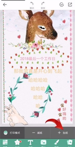 向上滑动屏幕,在页面右下角点击【加纸】,即可新增一页手账内容。