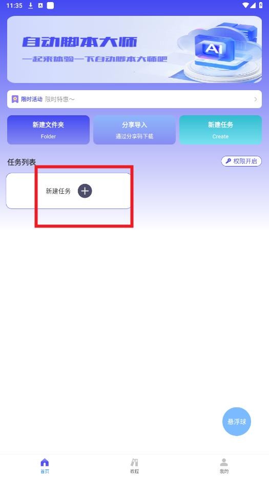 打开应用后,点击首页的新建任务”开始创建您的第一个自动化流程。