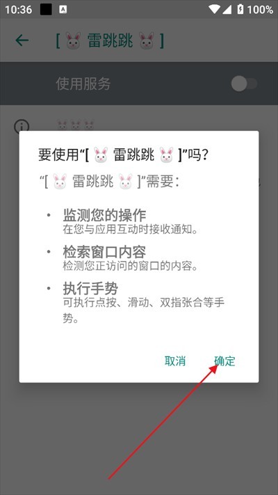 3、开启使用服务”开关,授权无障碍权限。