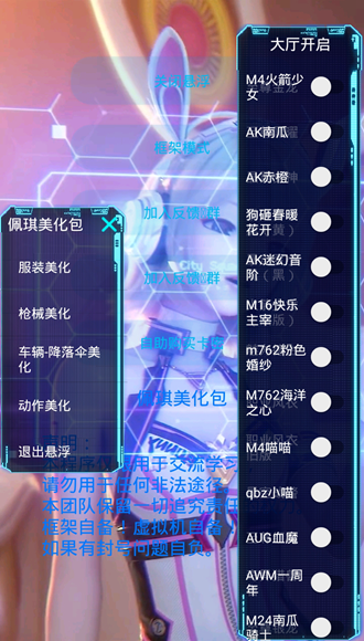 佩琪美化包框架是一款专为手游玩家打造的高自由度角色外观定制工具,支持在游戏运行中实时加载美化内容,无需重启即可即时生效。应用提供肤色、发型、服饰、特效等多维度编辑功能,界面简洁直观,新手也能快速上手;同时兼容主流安卓模拟器,适配性强,是追求个性与画质体验玩家的理想选择。