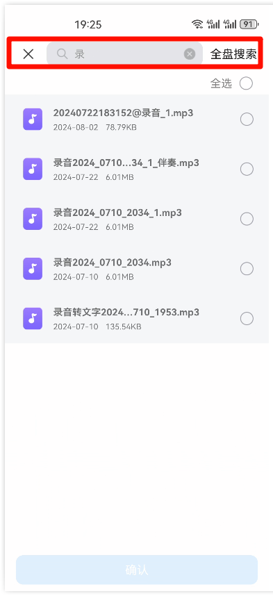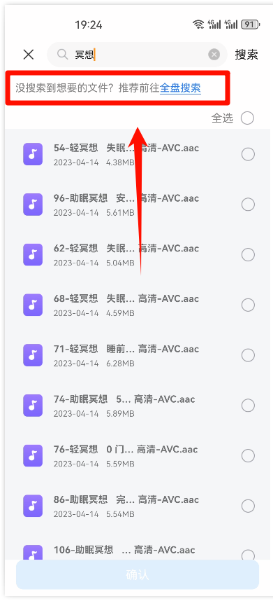 步骤4:还是没有搜索到文件之后,点击下方的【全盘搜索】,进入手机深度搜索。