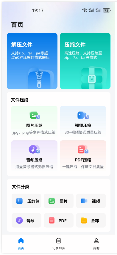 功能很全面的一款手机解压缩工具,金舟ZIP解压缩软件拥有非常高效的解压缩技术,支持市面上的大多数格式,除了文件压缩,还有图片压缩,视频压缩,音频压缩及pdf压缩等功能,支持对文件进行加密功能,轻松将手机上的文件压缩成你想要的格式,很全面易用。