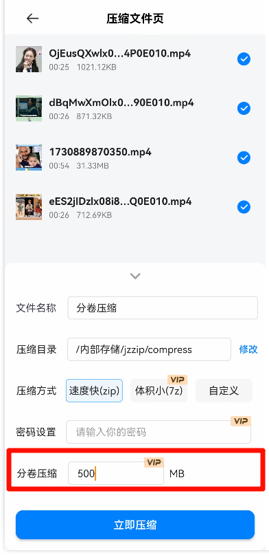 8、支持视频压缩,可以批量降低视频大小,腾出手机内存空间;