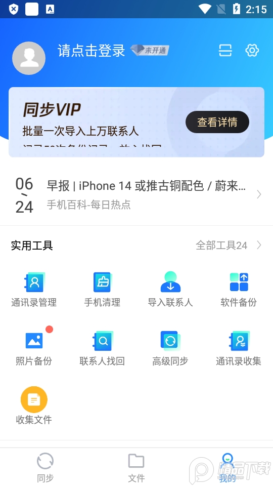 1、帮助你更方便的一键同步手机资料。
