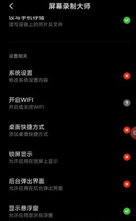 必须开启悬浮窗权限,否则无法正常使用核心录屏功能。
