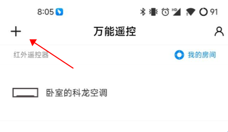2、进入app后,点击这个加号,就可以了,找到你的空调牌子匹配。