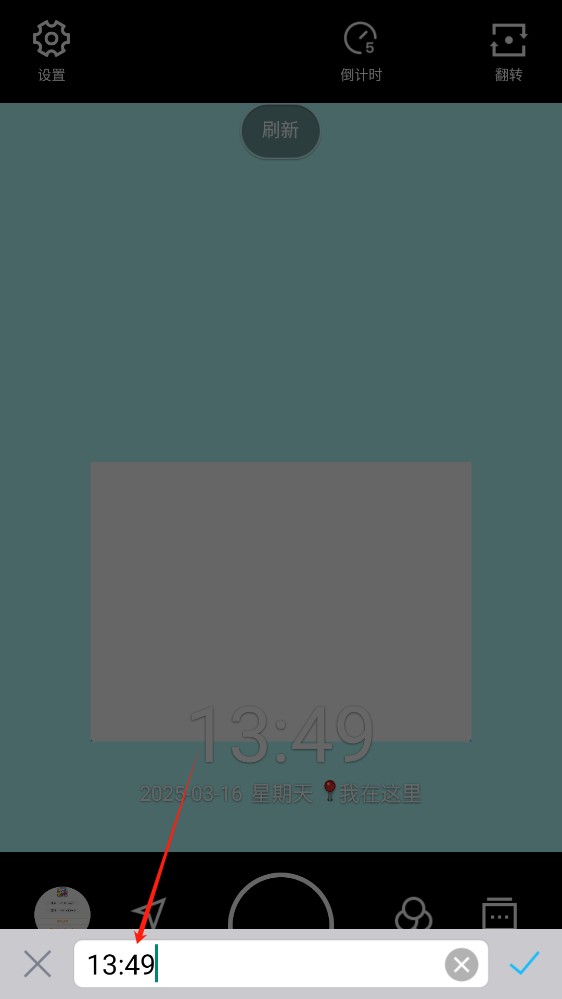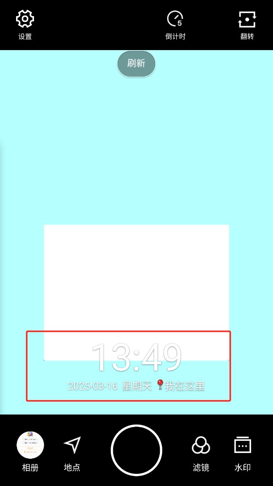 在拍摄界面中,点击日期”、时间”或地点”等字段,即可对水印内容进行个性化调整。