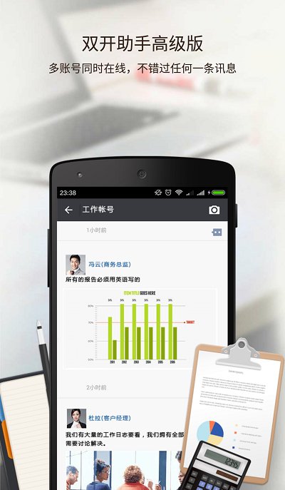 5、双开:一部手机,两个账号同时在线,轻松分享,自由聊天。