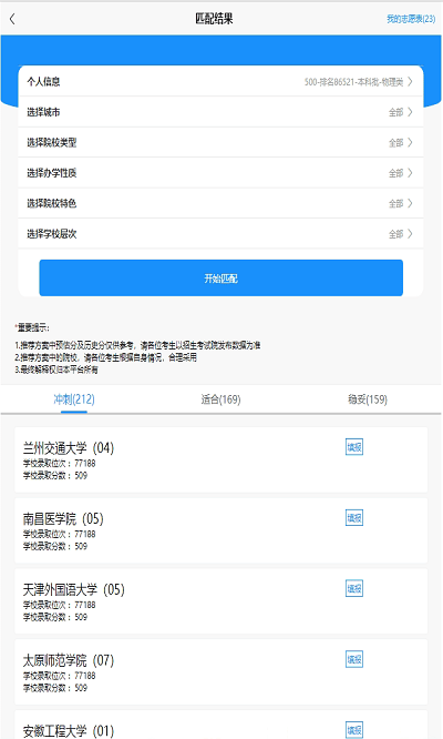 --一站式的为用户提供升学指导,为你推荐最合适以及成功率最高的大学批次。