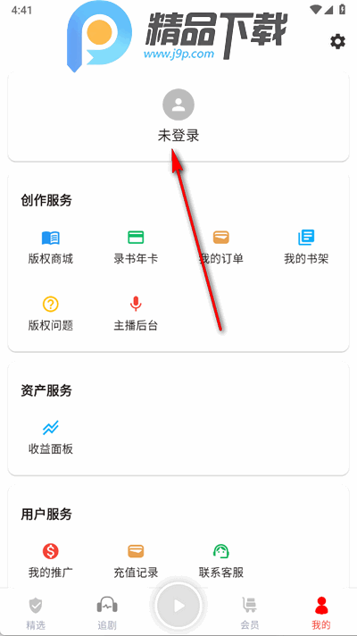 2、点击上方未登录