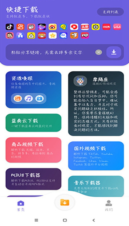多功能集成:快捷下载app整合了多种下载功能,用户无需安装多个应用即可完成多种资源的下载,大大节省了手机空间。