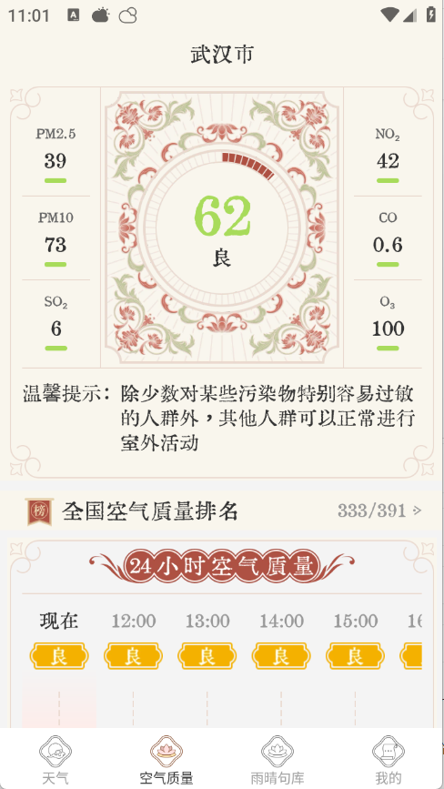 【空气质量预报】 覆盖全国市县级区域,提供15日空气质量趋势图,清晰展示PM2.5、PM10等污染物浓度,并智能判断是否适宜户外活动,守护呼吸健康。