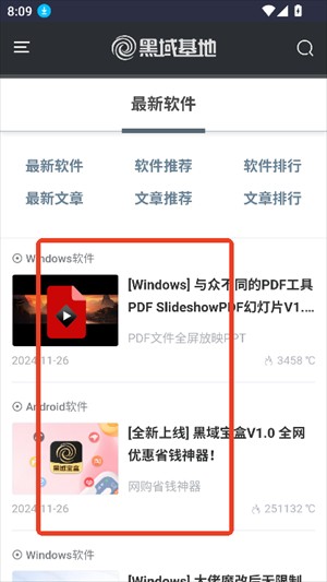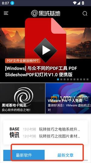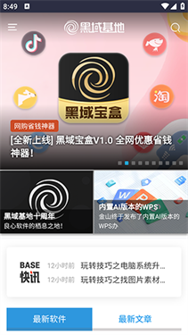 首先,在本站下载并安装黑域基地软件库App。打开应用后,首页会展示最新软件”与最新文章”两大核心板块,方便用户第一时间获取热门资源与实用资讯。