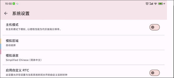 系统设置”用于切换掌机/主机模式,并设定语言与地区。注意:修改后需重启游戏才能生效。