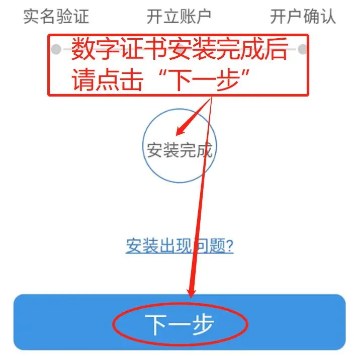 8. 安装数字证书:视频审核通过后点击确认”安装,完成后进入下一步