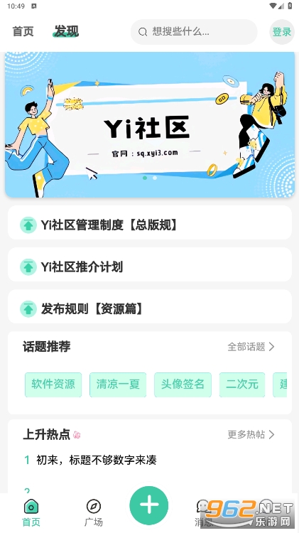 Yi社区是一款集手机资源社区和应用资源下载于一体的软件,通过该软件快速获取各类应用软件、游戏、音乐、电影等资源,还可以去进行交流分享各类手机资源,拥有海量资源,更新速度快,界面简洁易用,这里有各种热门的软件资源为你提供,满足你的各种需求服务。