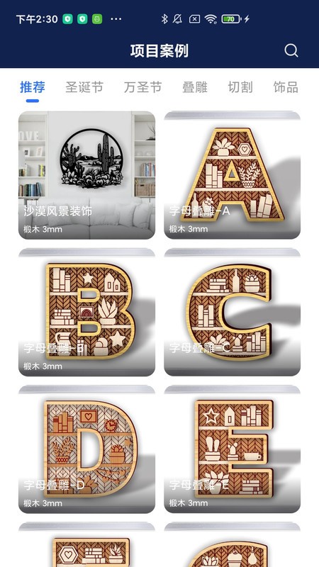 可通过分类查找圣诞节、万圣节、叠调等诸多项目案例,便于找到案例并欣赏