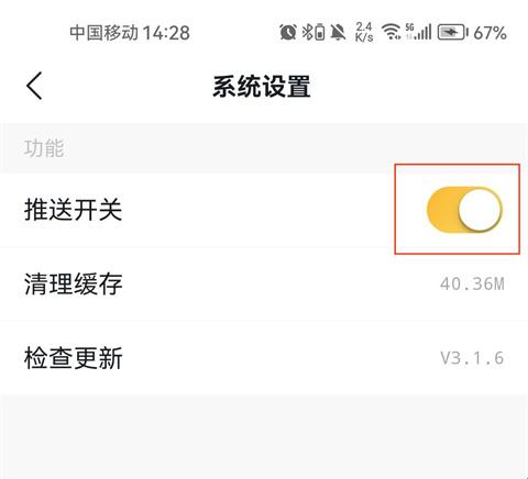 3、将推送开关关闭即可关闭推送;