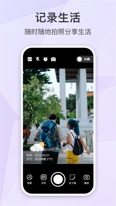 定制时间水印相机app是一款可以自定义时间与地点的优质相机APP。这款软件可以准确记录你的位置信息并以水印的方式展现出来,水印信息包括了时间、地点、天气、海拔、风速、湿度、经纬度等等,时间真实,例如时间水印、工作水印、生活水印等等,应有尽有!用户可以自由添加对应时间位置的水印,随时随地进行打卡拍照,让你轻松办公,快乐生活!
