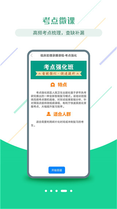 整合核心医学题库资源,支持随时答题、系统自动批改与评分,帮助学员及时检测掌握情况,查漏补缺、巩固提升。