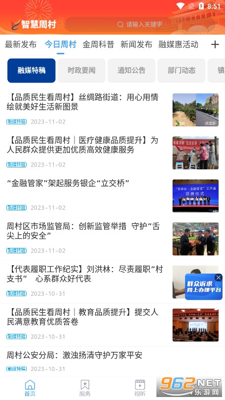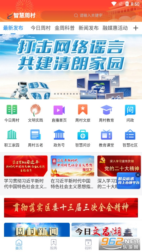 智慧周村app是周村区的融媒体中心,汇聚精彩热点,及时传递头条新闻,多种传播形式,图文、视听、直播等等,阅读栏目丰富,还有周全的便民服务可享受,需要的小伙伴赶紧来下载吧。