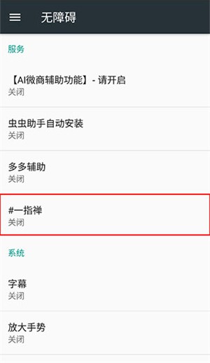 3、选择并点击一指禅功能入口