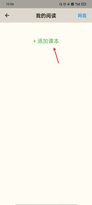 进入学习”界面后,点击中间的添加阅读”按钮,即可开启课本管理功能。