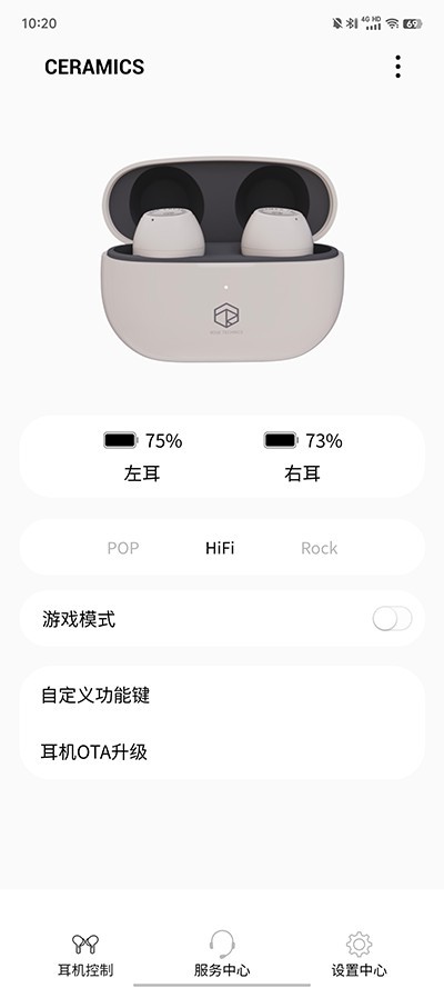 3. 连接成功后,主界面将实时显示左右耳机电量及当前播放模式状态;
